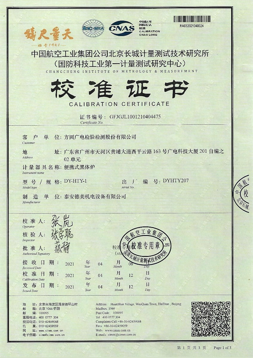| 上一條:上海紅力檢測技術(shù)有限公司-耳溫計黑體空腔 | 下一條:便攜式溫濕度檢定箱(-10-60℃)校準(zhǔn)證書 |