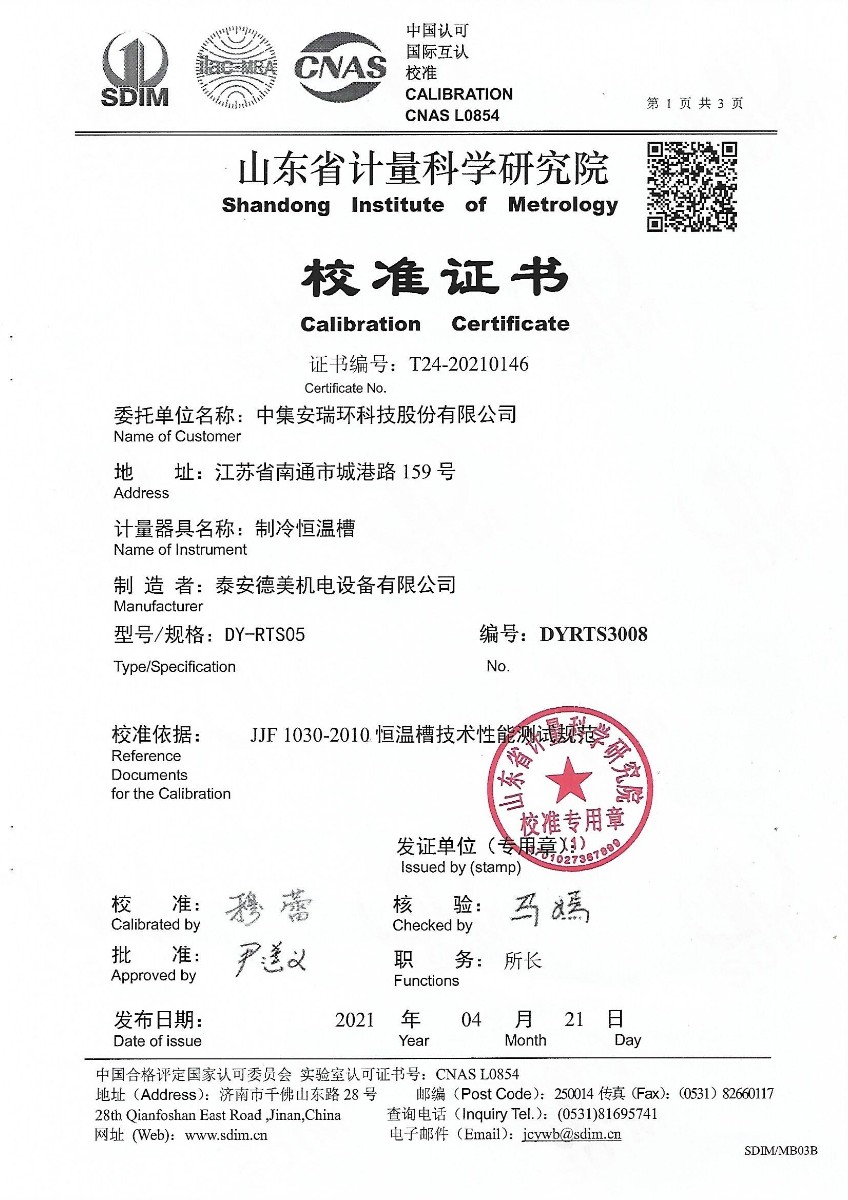 上一條:中集安瑞環(huán)科技股份有限公司-高精度恒溫水槽下一條:便攜式溫濕度檢定箱(-10-60℃)校準證書