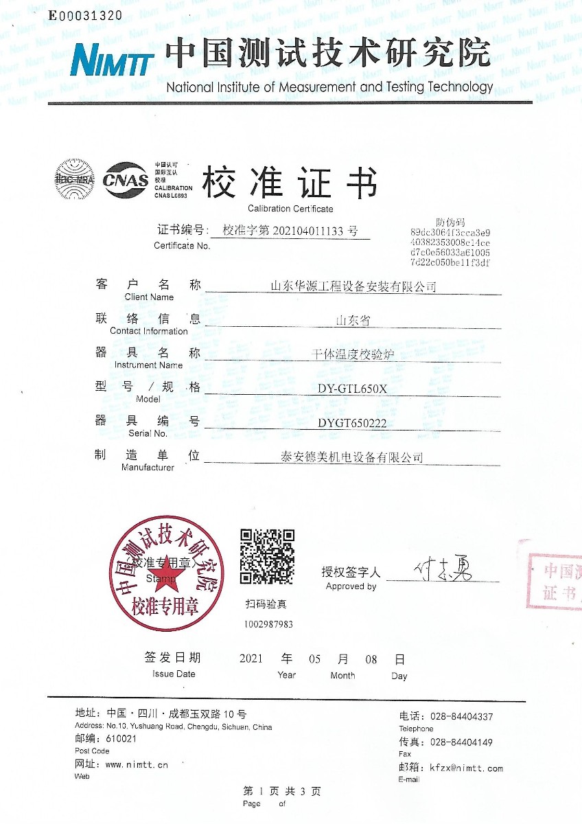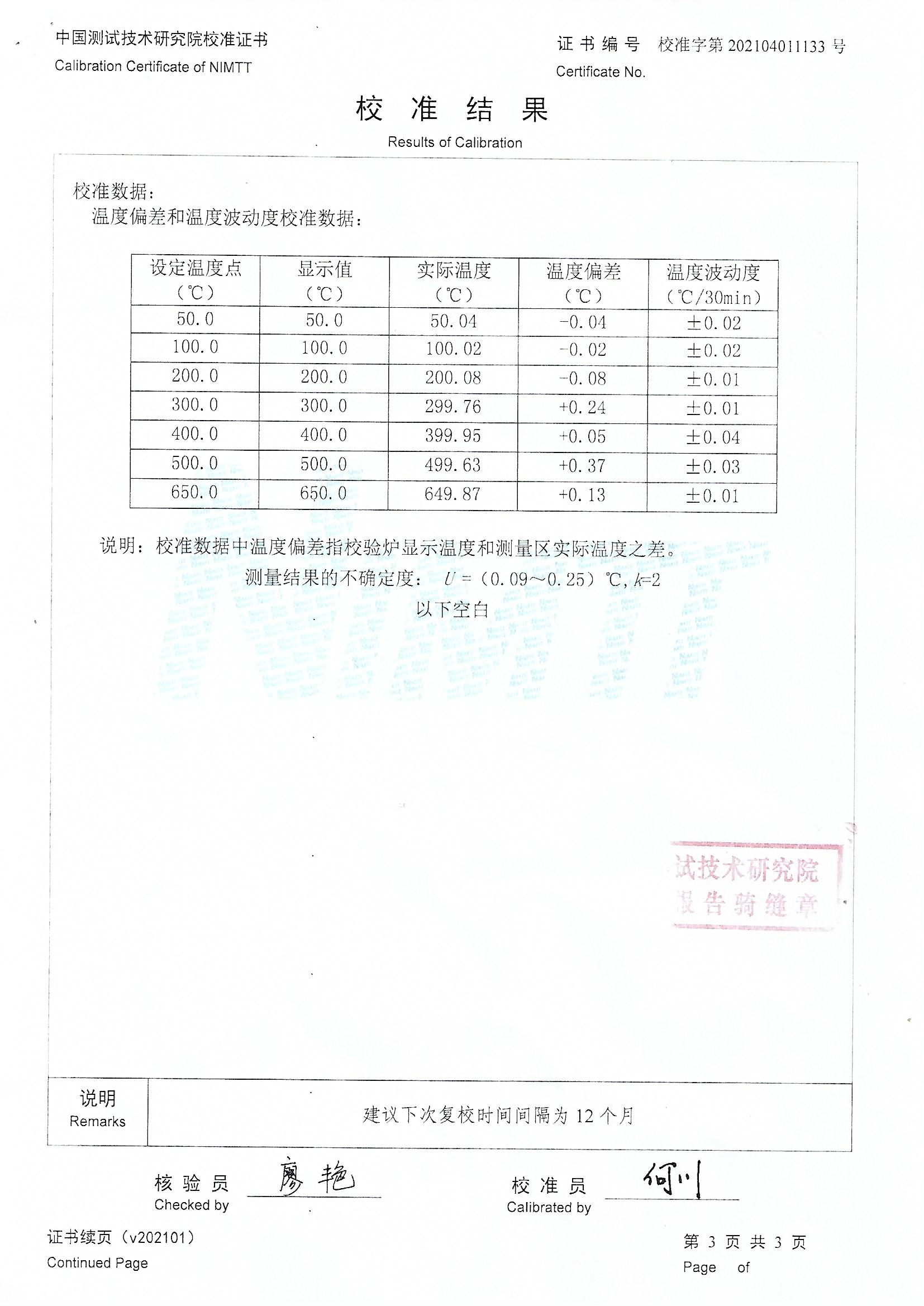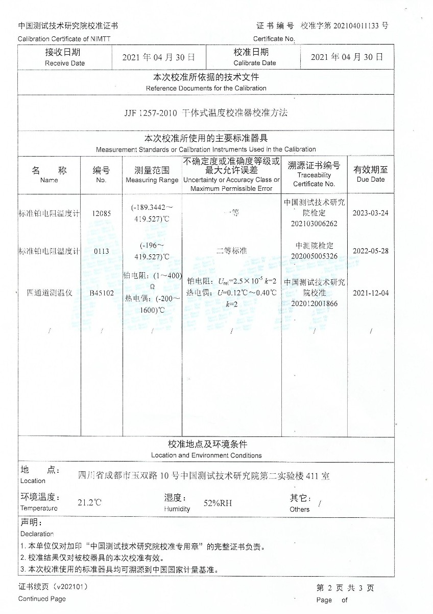 | 上一條:馬鞍山科思化學(xué)有限公司-干體溫度校驗(yàn)爐 | 下一條:便攜式溫濕度檢定箱(-10-60℃)校準(zhǔn)證書(shū) |