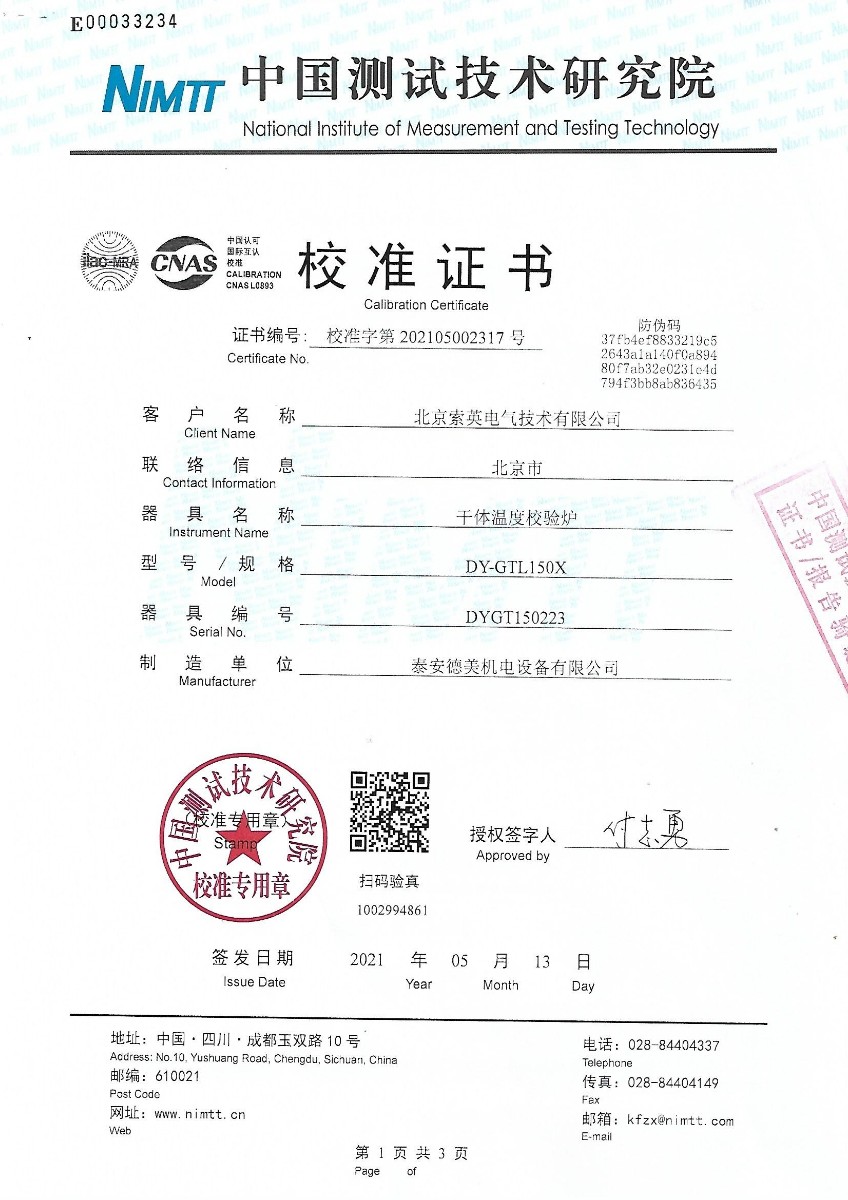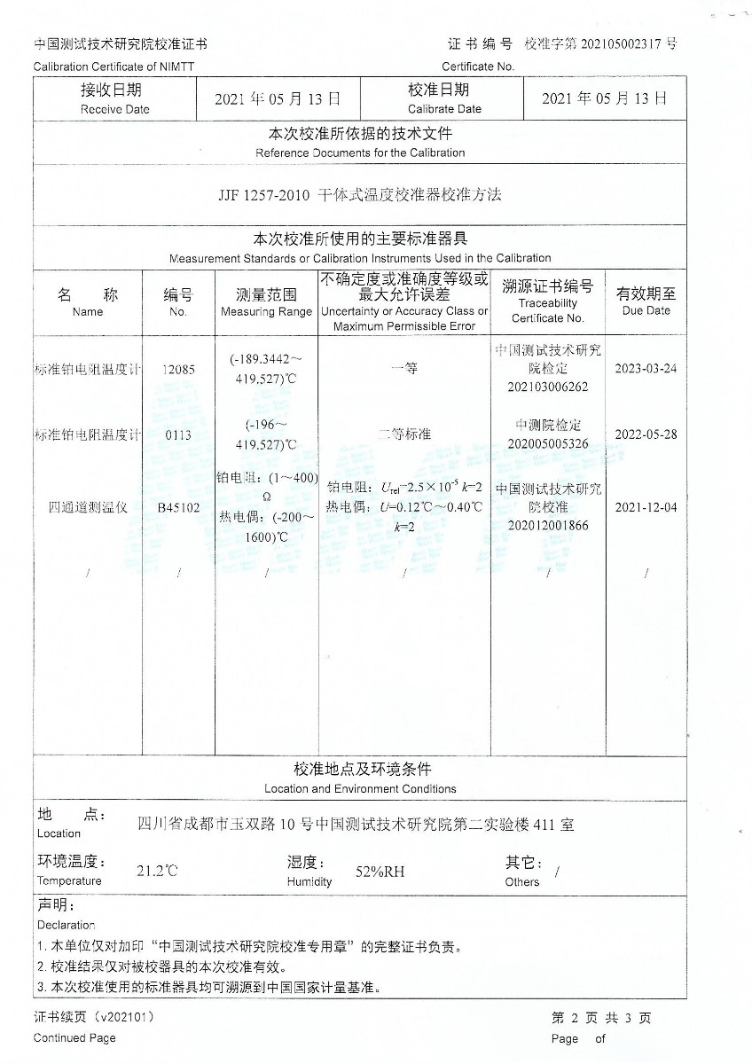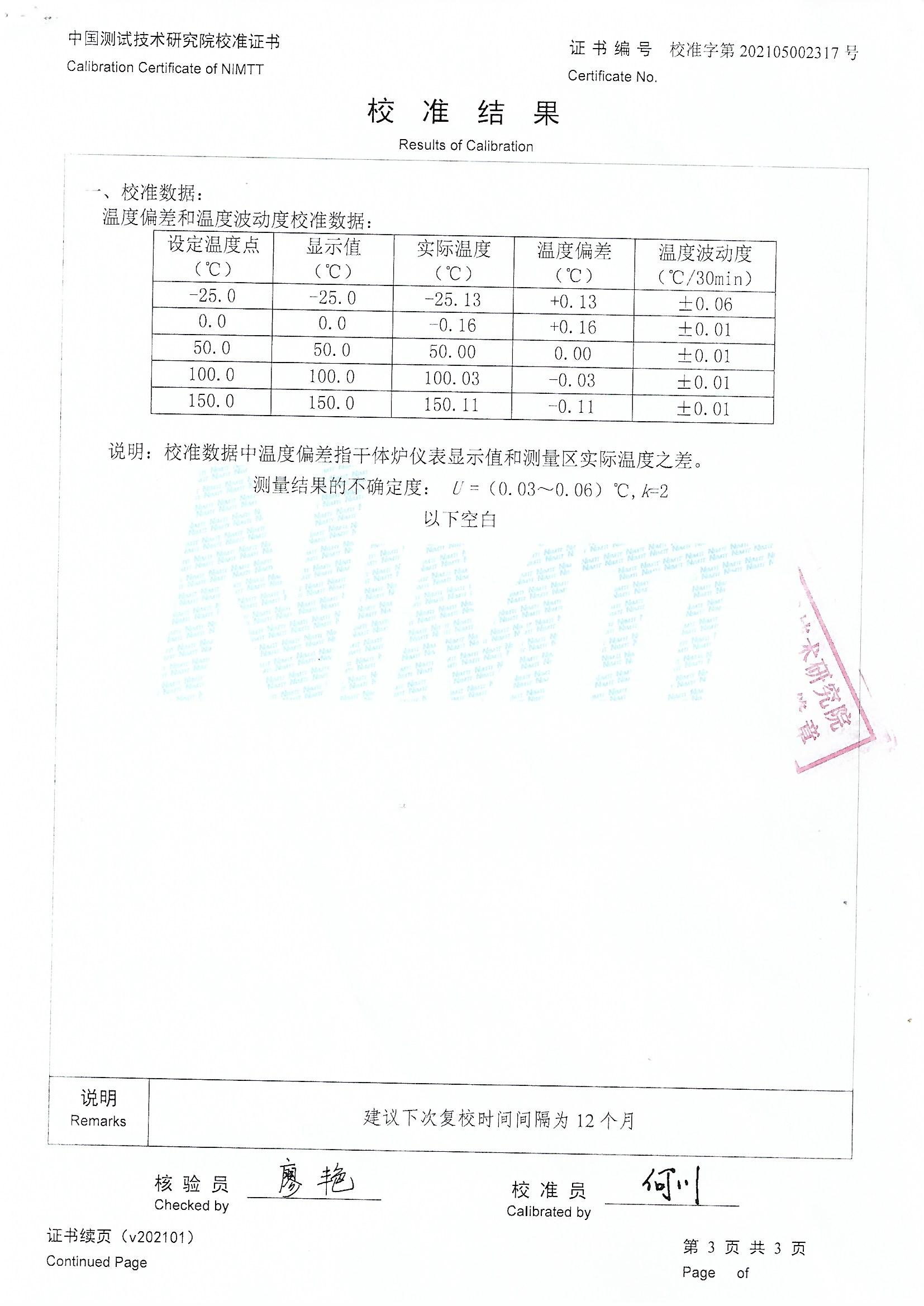 | 上一條:龍旗電子(惠州)有限公司便攜式溫濕度檢定箱 | 下一條:便攜式干體爐(-30-150℃)校準(zhǔn)證書(shū) |