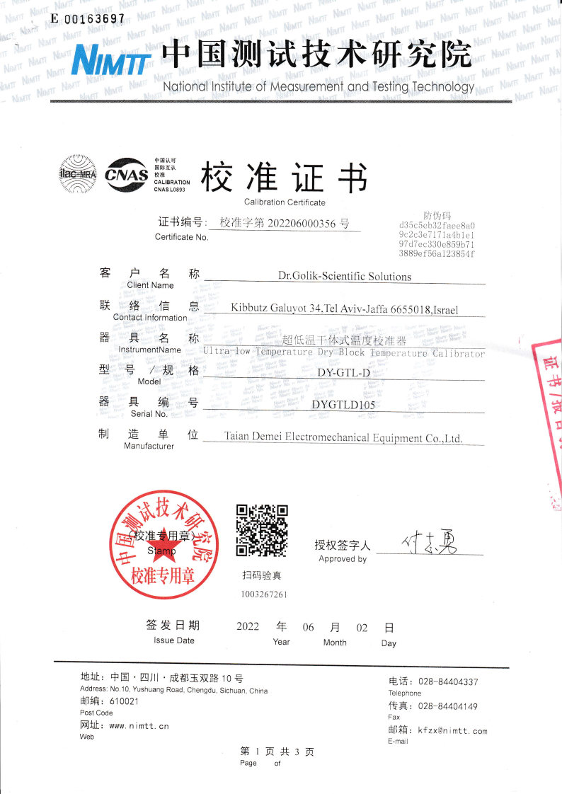 以色列-超低溫干體爐 2022-6-7 本文被閱讀 13858 次