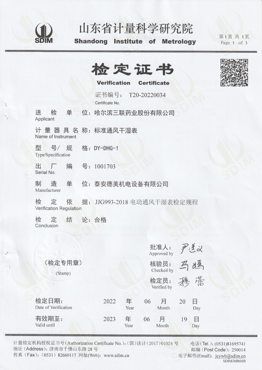 哈爾濱三聯(lián)藥業(yè)股份有限公司-標(biāo)準(zhǔn)通風(fēng)干濕表