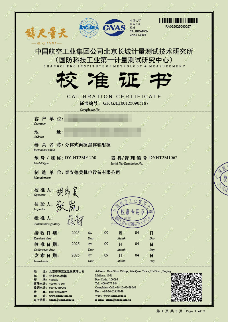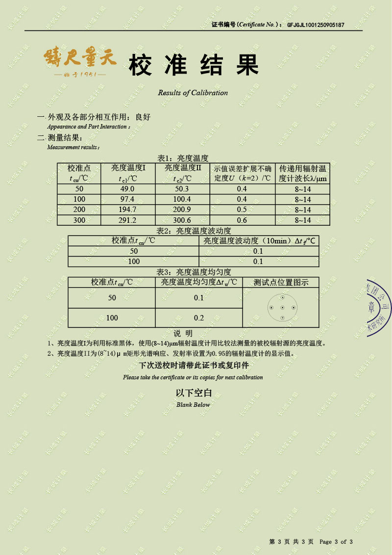 分體式面源黑體輻射源(室溫+5-300℃)校準(zhǔn)證書 2025-9-12 本文被閱讀 1124 次