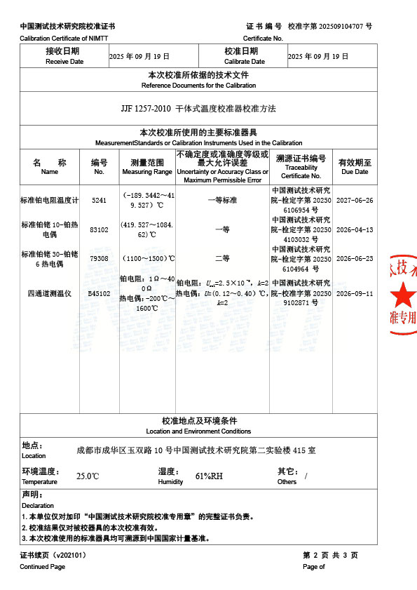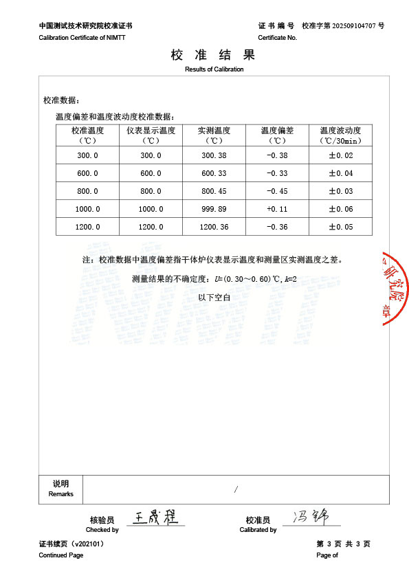 高溫干體爐(300-1200℃)校準(zhǔn)證書 2025-9-22 本文被閱讀 731 次