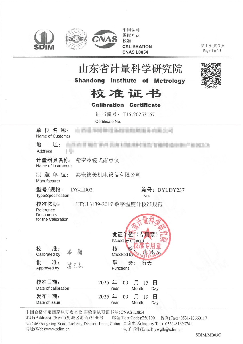 冷鏡式露點儀檢定、校準(zhǔn)證書 2025-9-23 本文被閱讀 793 次