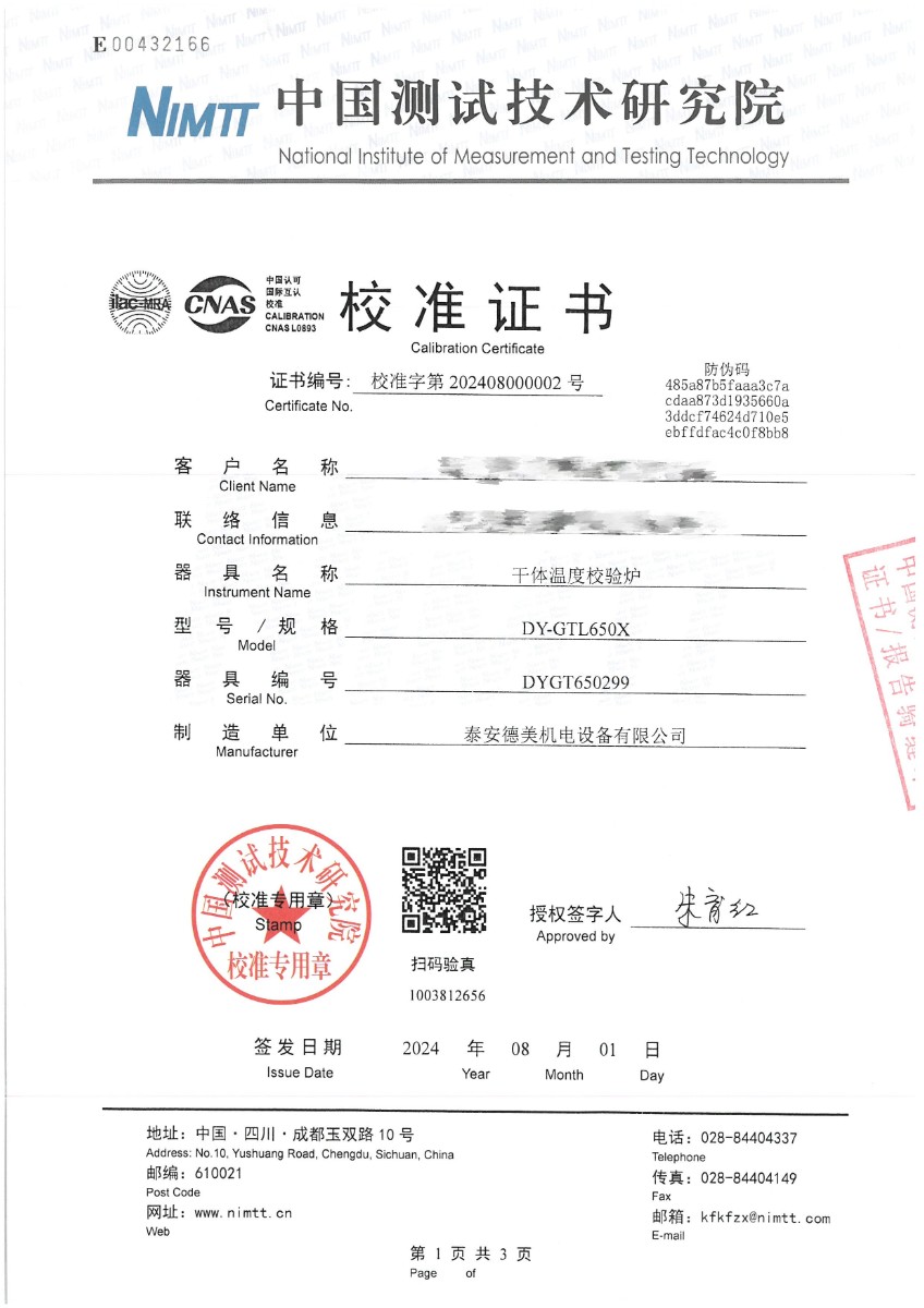上一條:DY-HT1M-200一體面源黑體爐/黑體輻射源 (-10-80℃ 200mm) | 下一條:超低溫面源黑體爐(-40-80℃)校準(zhǔn)證書 |