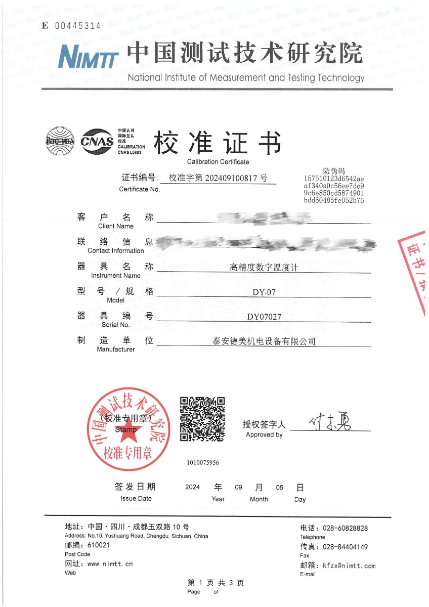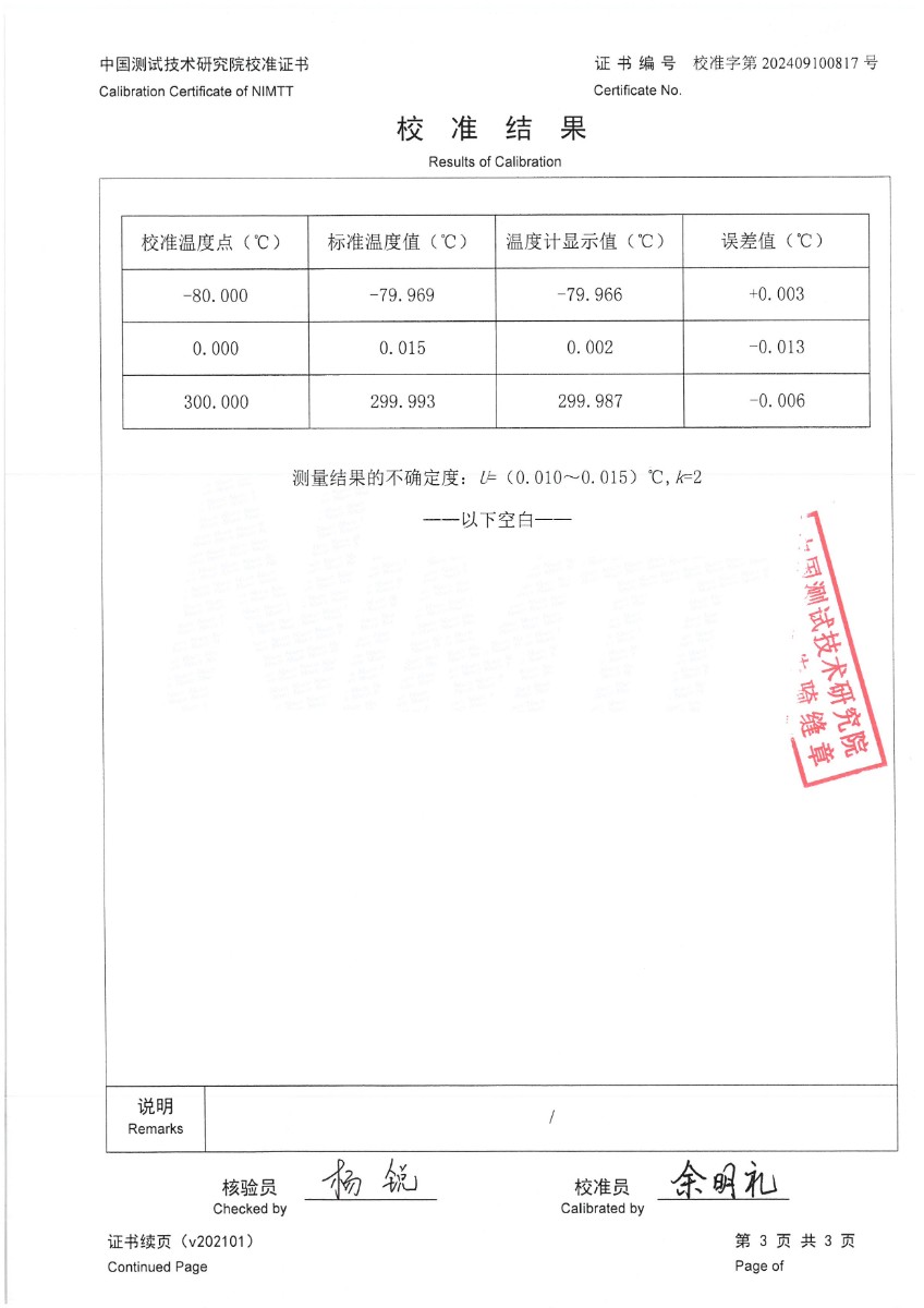 上一條:手持高精度數(shù)字溫度計(-80~300℃)校準證書 | 下一條:超低溫面源黑體爐(-40-80℃)校準證書 |