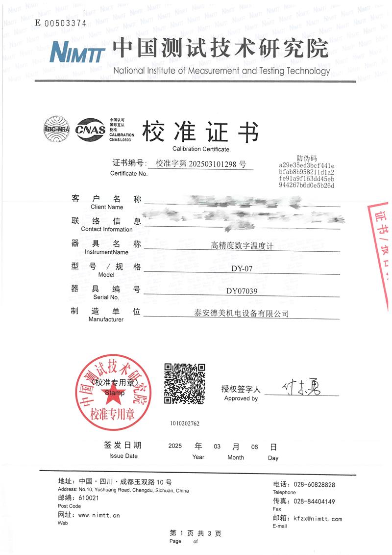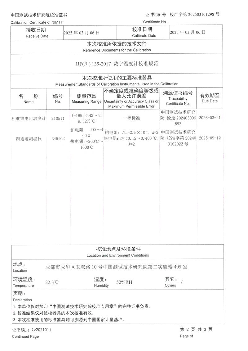 上一條:露點儀檢定、校準(zhǔn)證書 | 下一條:超低溫面源黑體爐(-40-80℃)校準(zhǔn)證書 |