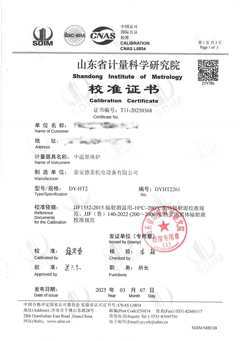 中溫黑體爐(50~700℃)校準(zhǔn)證書 2025-3-12 本文被閱讀 4443 次