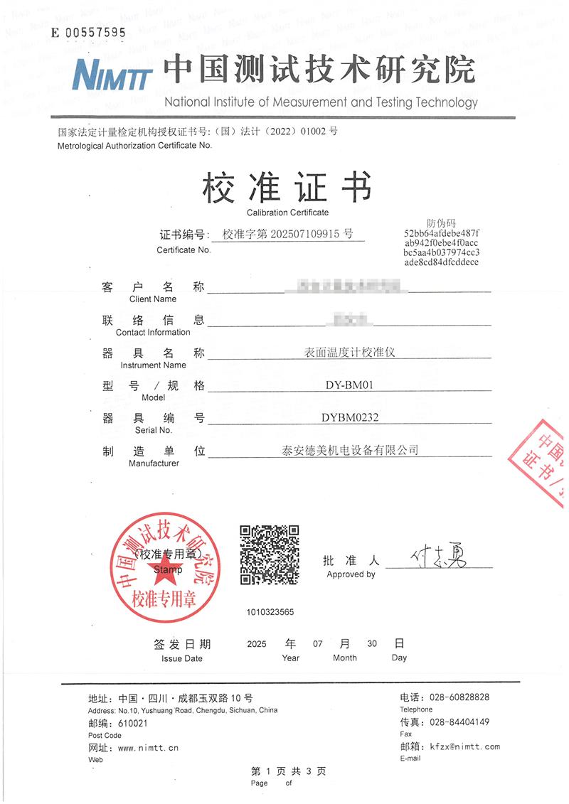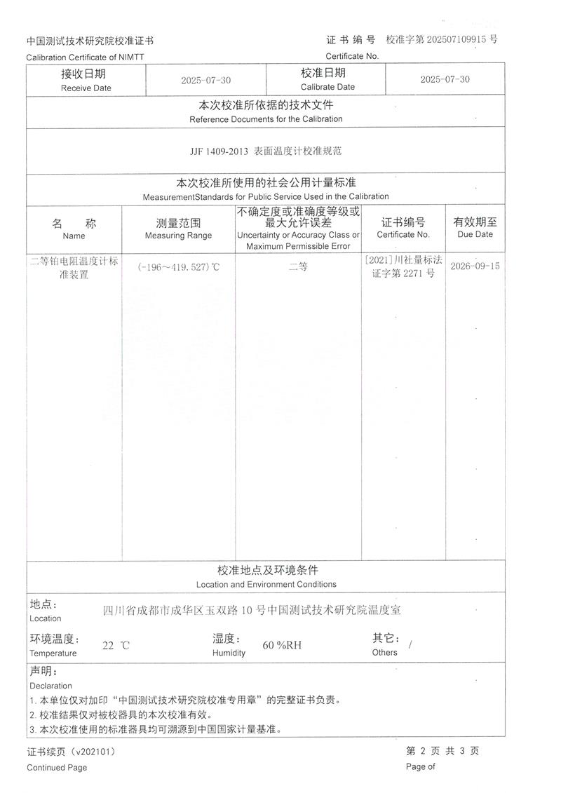 表面溫度計(jì)校準(zhǔn)儀(40-400℃)校準(zhǔn)證書 2025-8-6 本文被閱讀 1678 次
