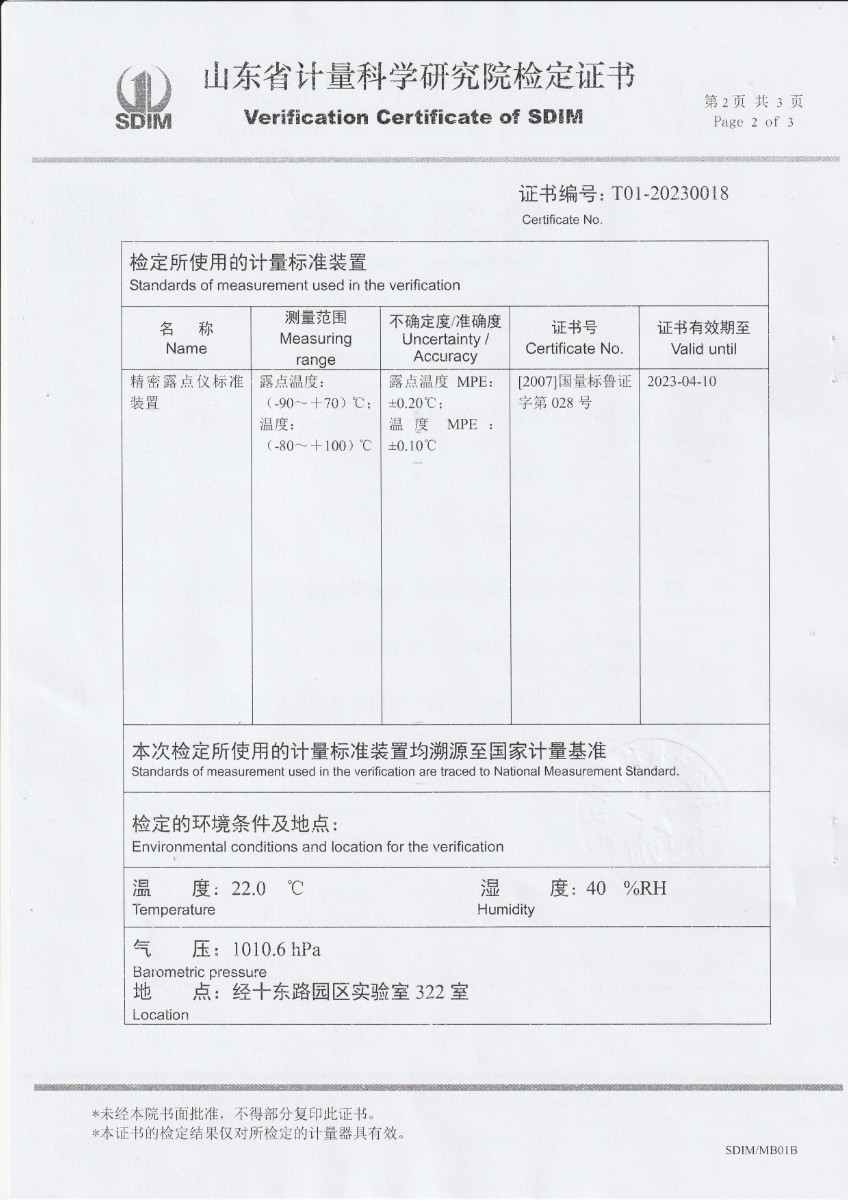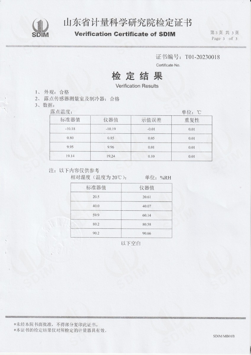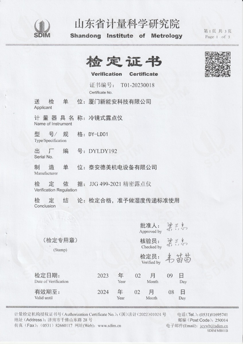 廈門新能安科技有限公司 冷鏡式露點儀 檢定證書 2023-2-25 本文被閱讀 9538 次