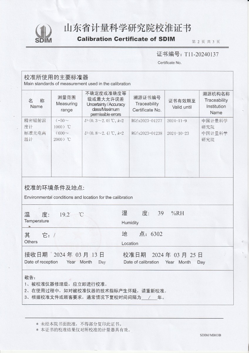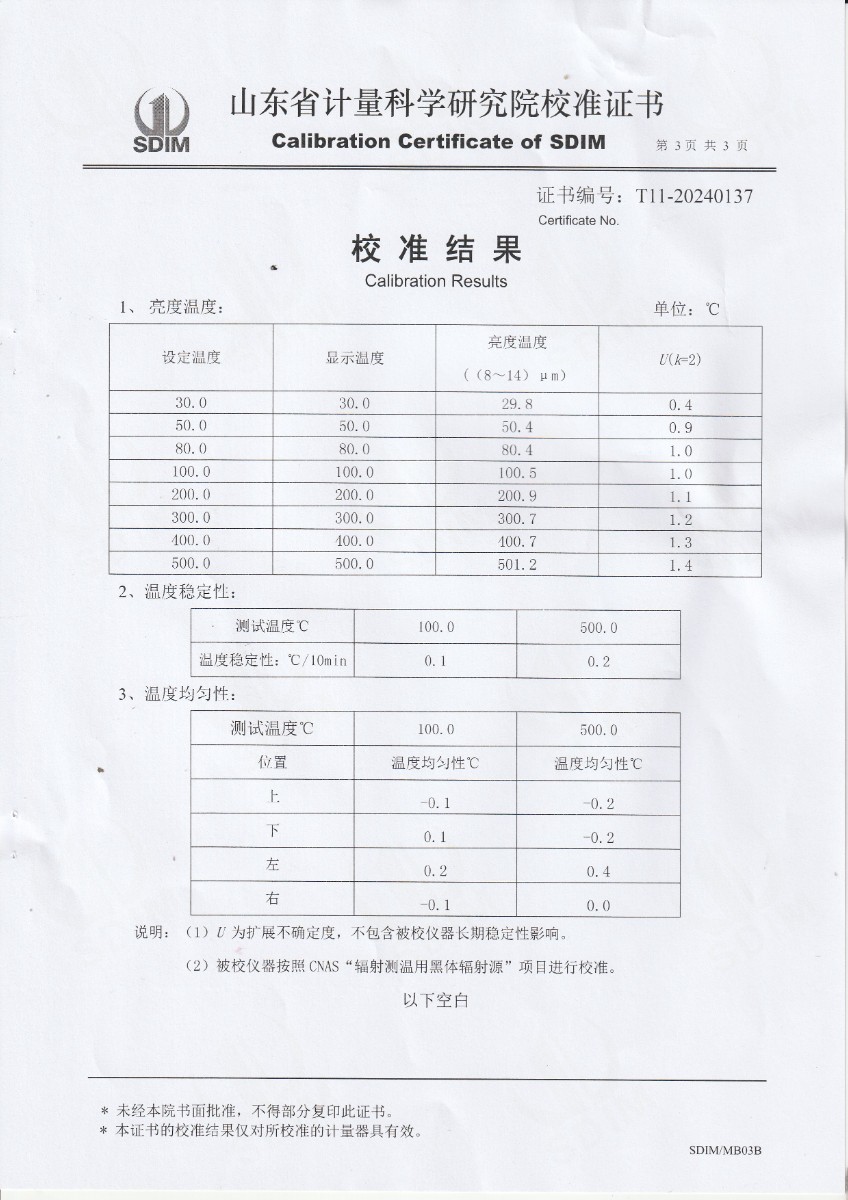 面源黑體爐校準(zhǔn)證書 2024-3-27 本文被閱讀 6091 次