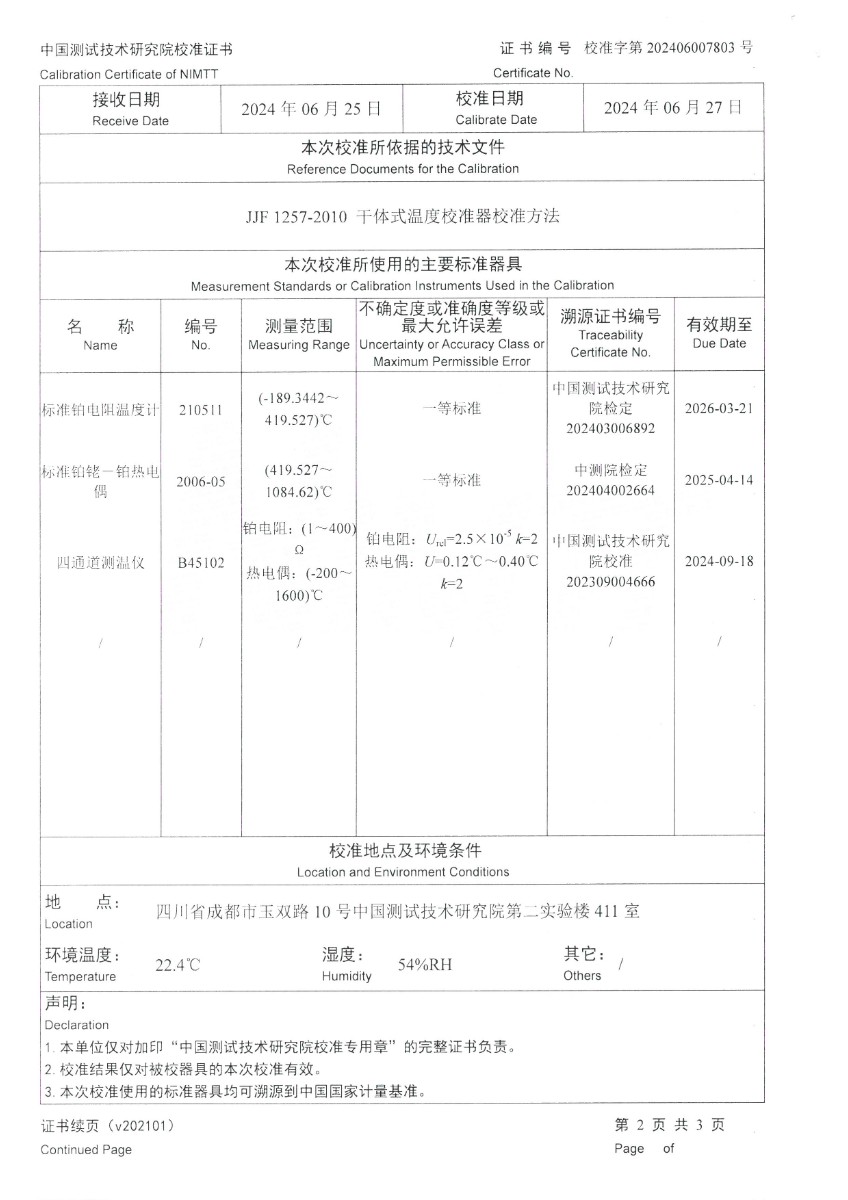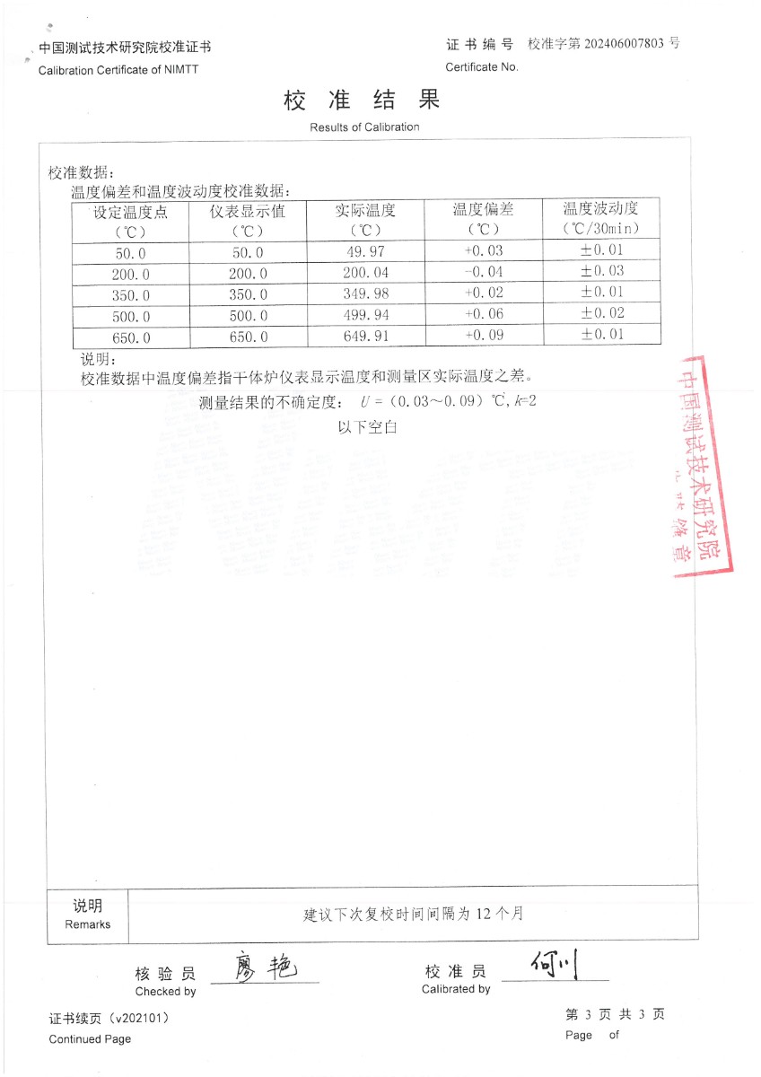 上一條:中溫干體爐(50~450℃)校準(zhǔn)證書 | 下一條:超低溫面源黑體爐(-40-80℃)校準(zhǔn)證書 |