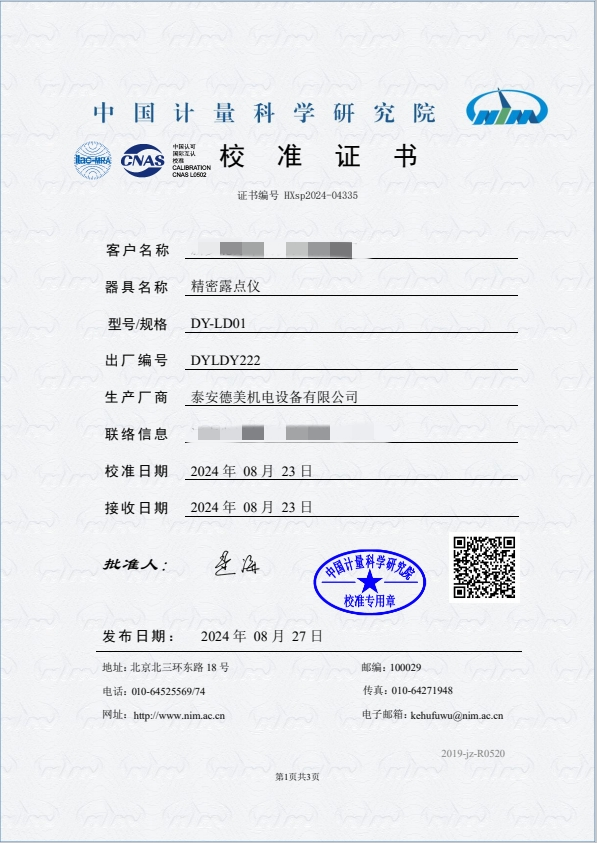 露點(diǎn)儀校準(zhǔn)證書 2024-9-3 本文被閱讀 7061 次