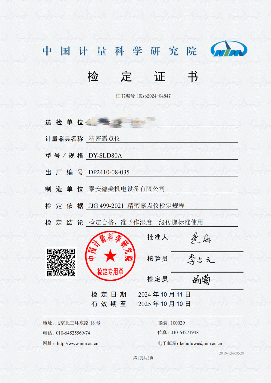 露點儀校檢定證書 2024-10-25 本文被閱讀 6455 次