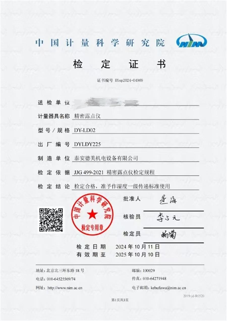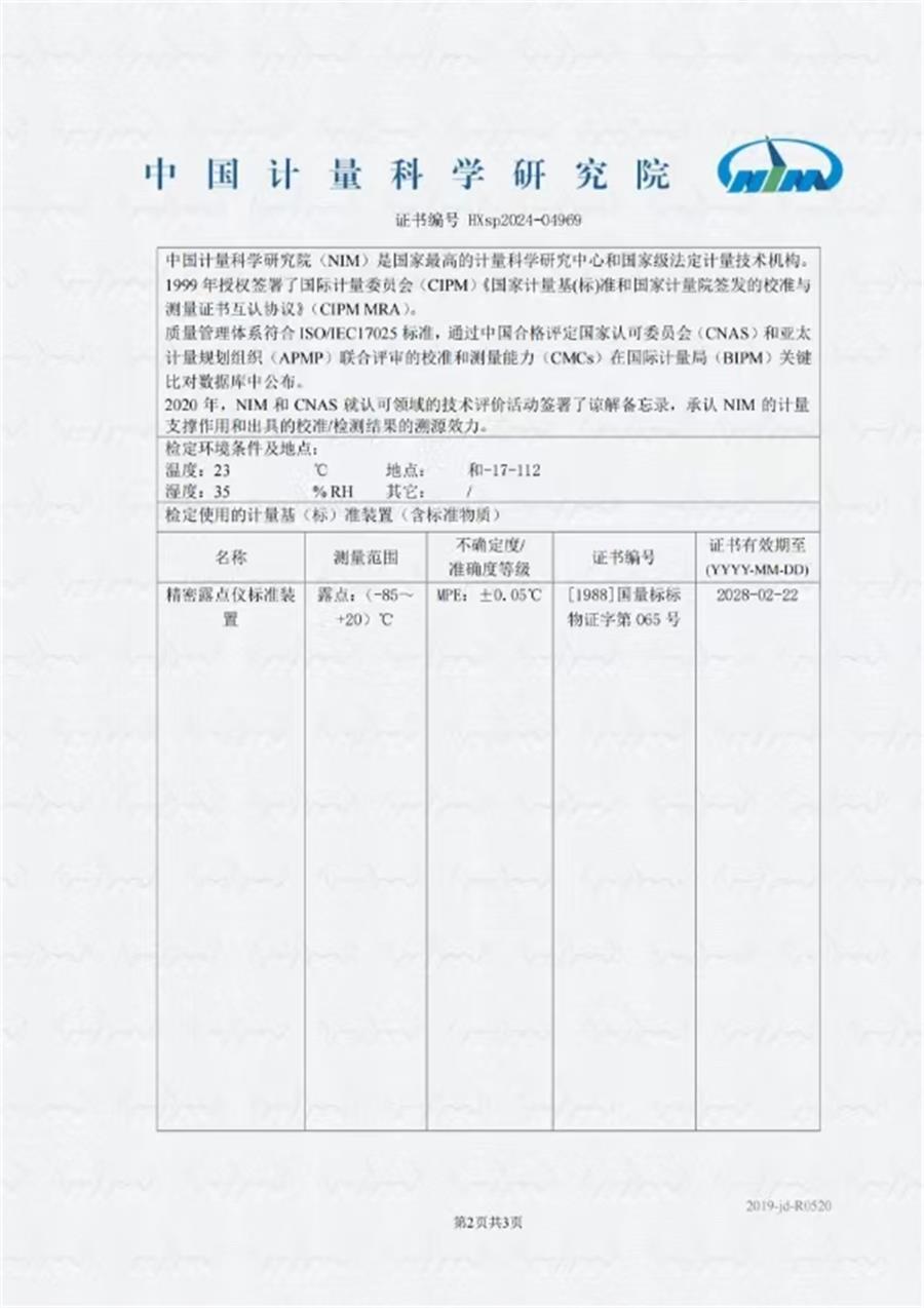 露點儀檢定證書 2024-11-6 本文被閱讀 6114 次