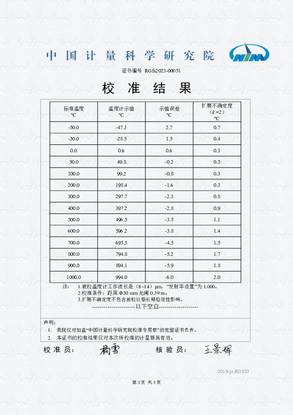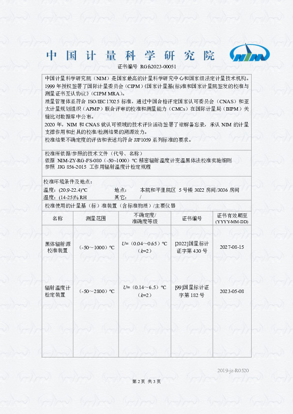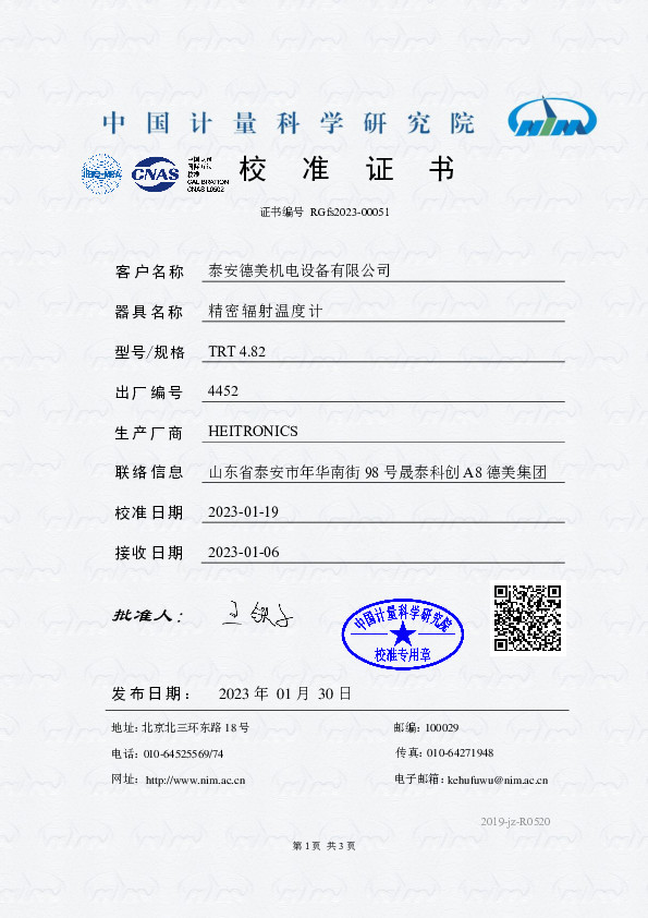 泰安德美機電設(shè)備有限公司 TRT4.82 精密輻射溫度計 校準證書 2023-2-9 本文被閱讀 12133 次