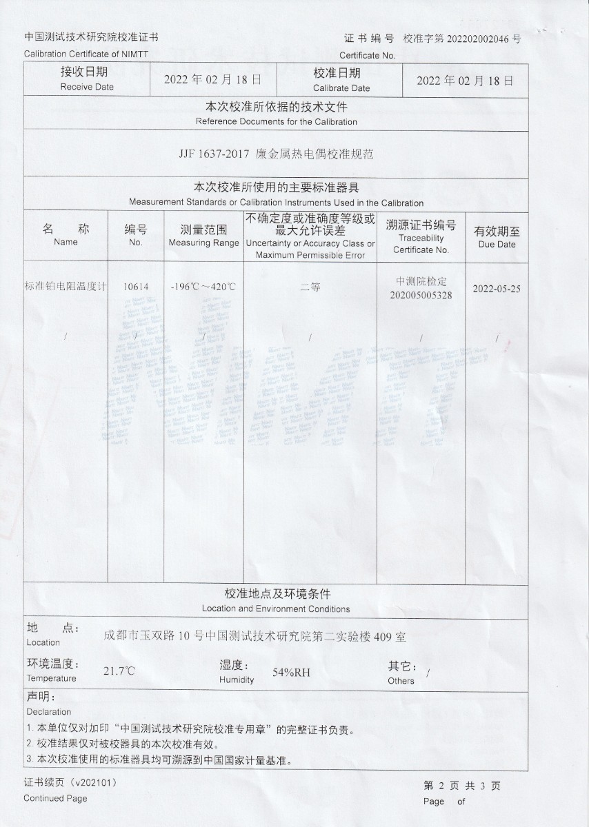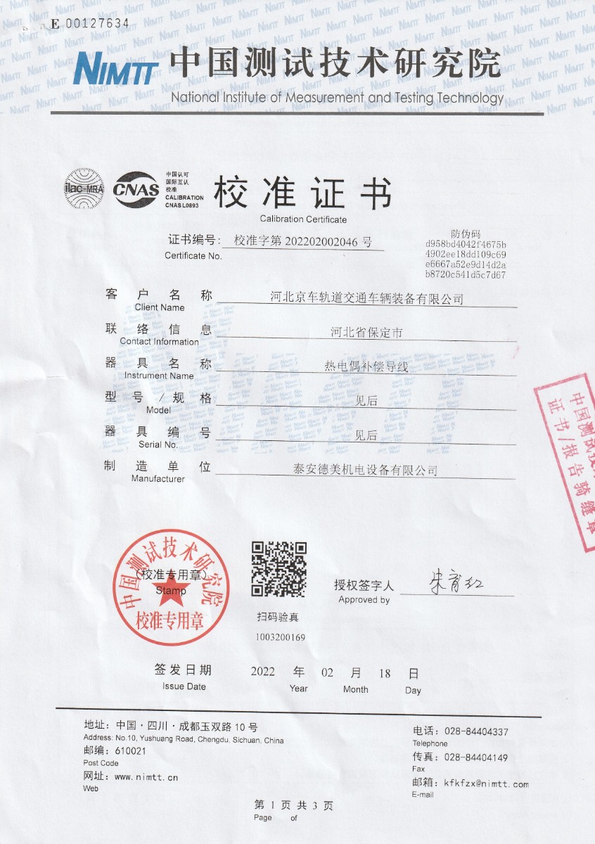 上一條:河北京車軌道交通車輛裝備有限公司-零點恒溫器 | 下一條:便攜式干體爐(-30-150℃)校準(zhǔn)證書 |