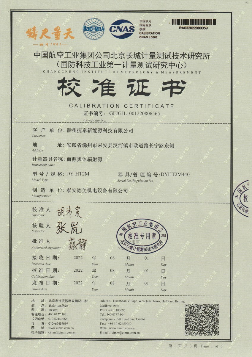 滁州捷泰新能源科技有限公司-面源黑體爐 2022-8-17 本文被閱讀 14199 次