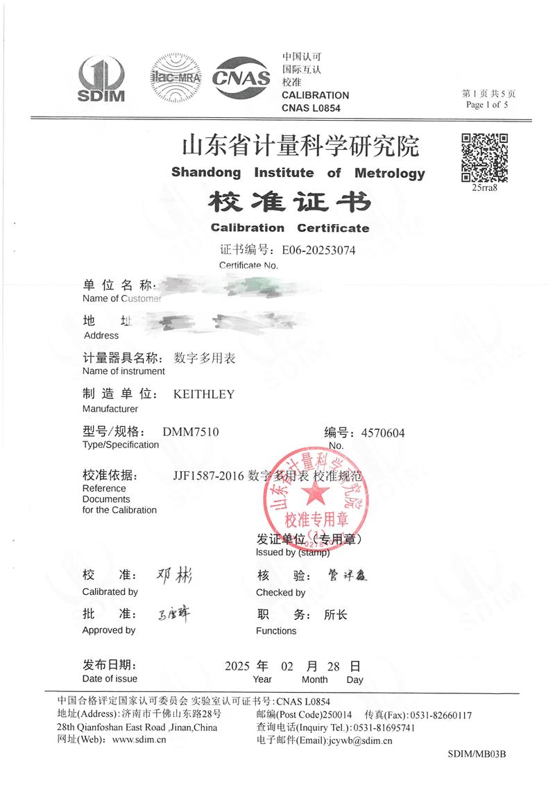 上一條:高精度數(shù)字溫度計(jì)校準(zhǔn)證書 | 下一條:超低溫面源黑體爐(-40-80℃)校準(zhǔn)證書 |