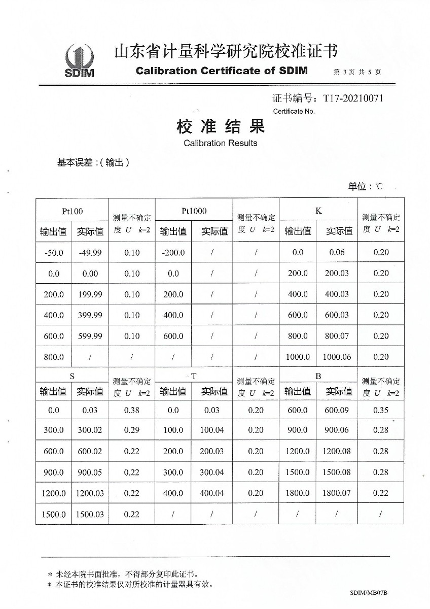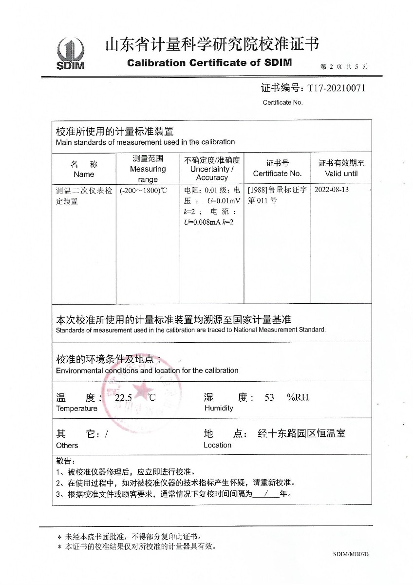 | 上一條:山東華源工程設(shè)備安裝有限公司-智能壓力校驗(yàn)儀X210461 | 下一條:便攜式干體爐(-30-150℃)校準(zhǔn)證書 |