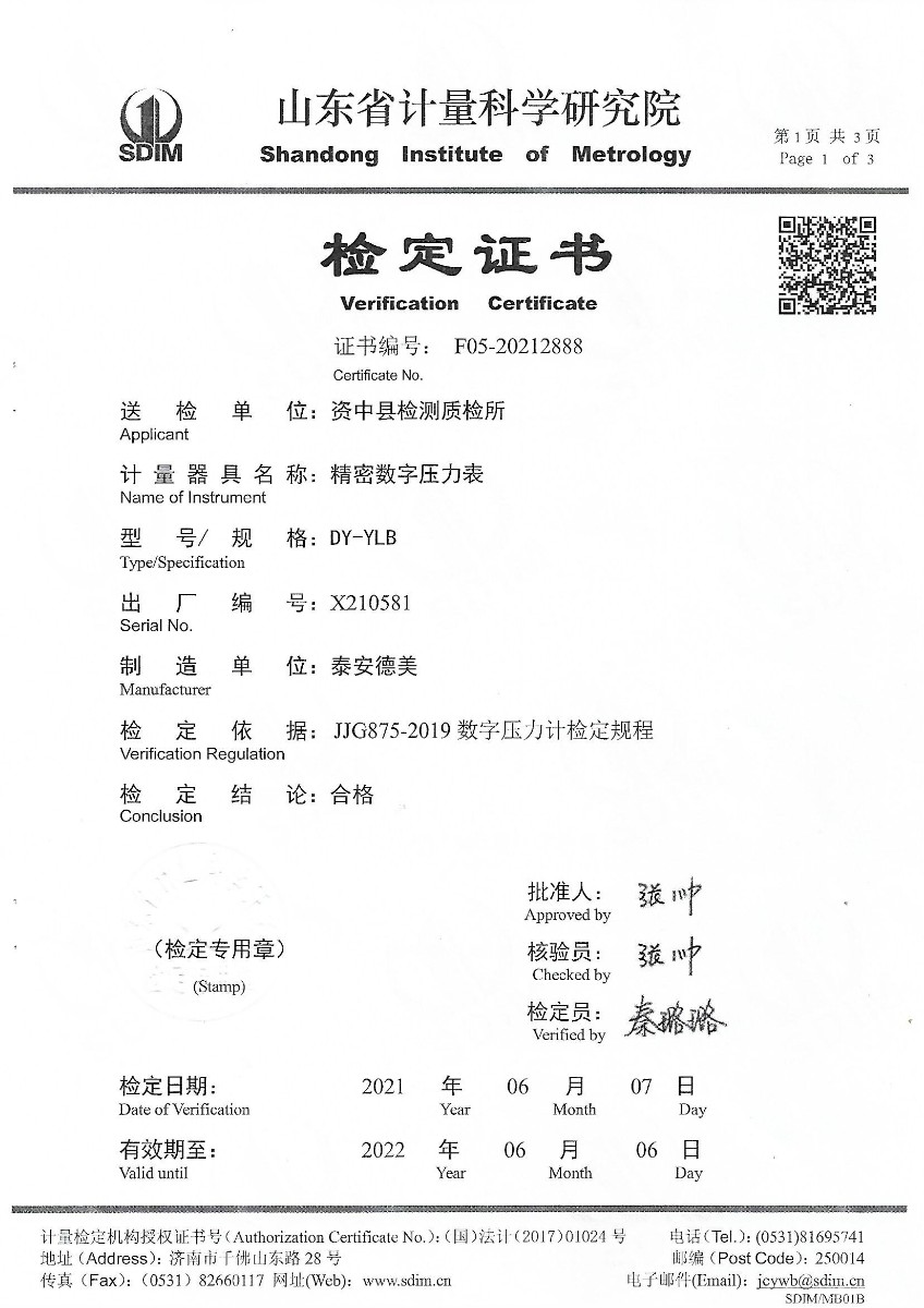 上一條:南昌計(jì)量檢定站-數(shù)字壓力校驗(yàn)儀 | 下一條:便攜式干體爐(-30-150℃)校準(zhǔn)證書 |