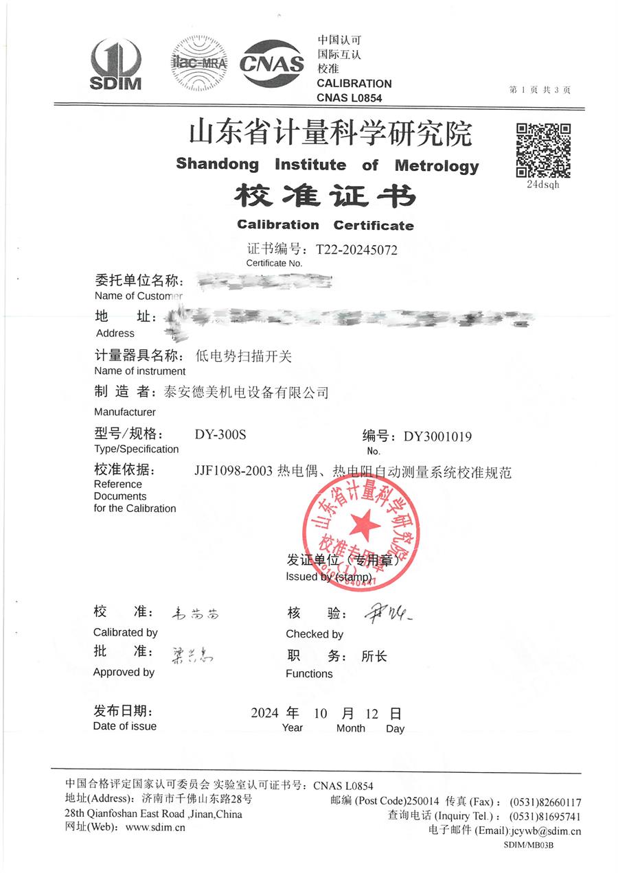 低電勢掃描開關校準證書 2024-10-15 本文被閱讀 5340 次