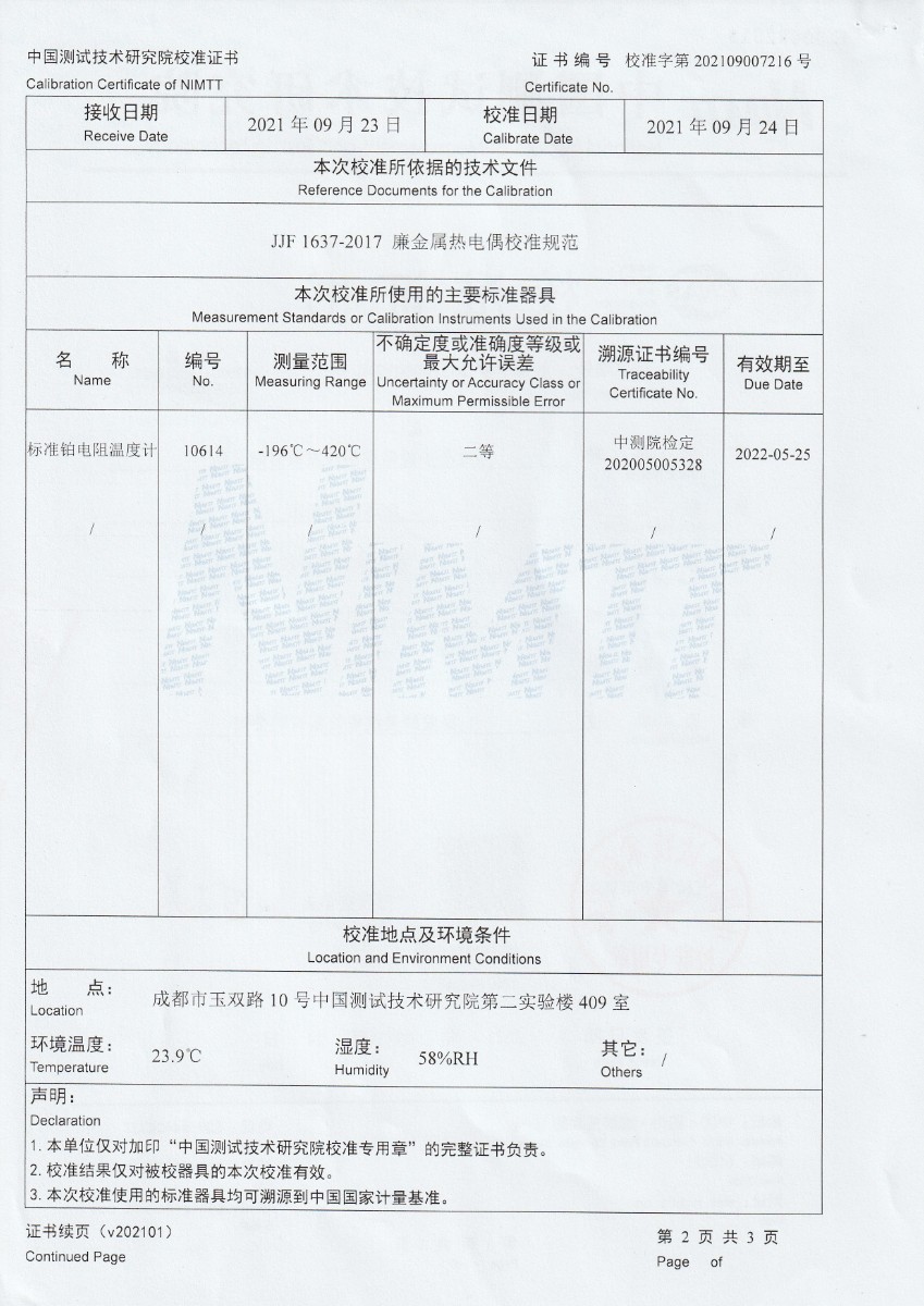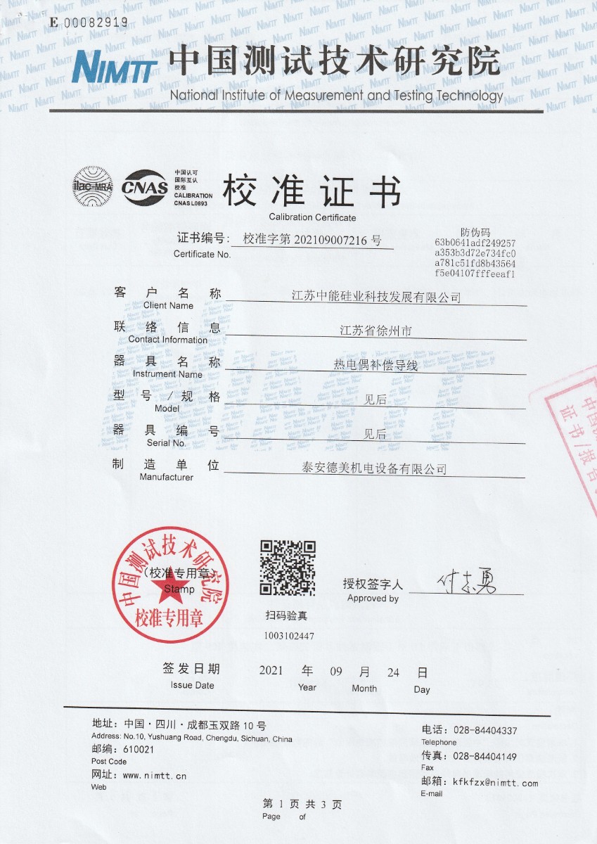 | 上一條:江蘇中能硅業(yè)科技發(fā)展有限公司-零度恒溫器 | 下一條:便攜式溫濕度檢定箱(-10-60℃)校準證書 |