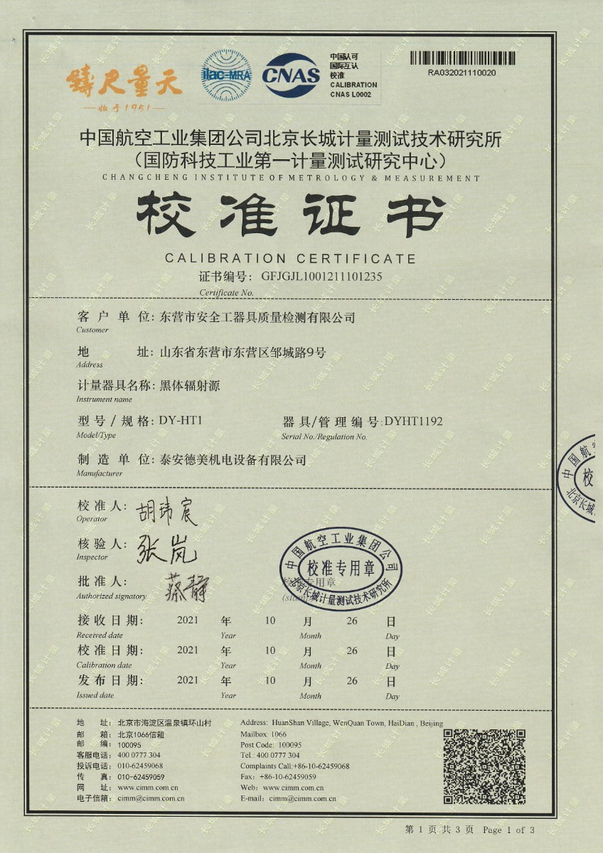 | 上一條:浙江泰林生命科學(xué)有限公司-精密數(shù)字壓力表 | 下一條:便攜式溫濕度檢定箱(-10-60℃)校準(zhǔn)證書 |