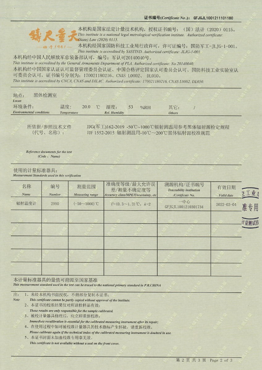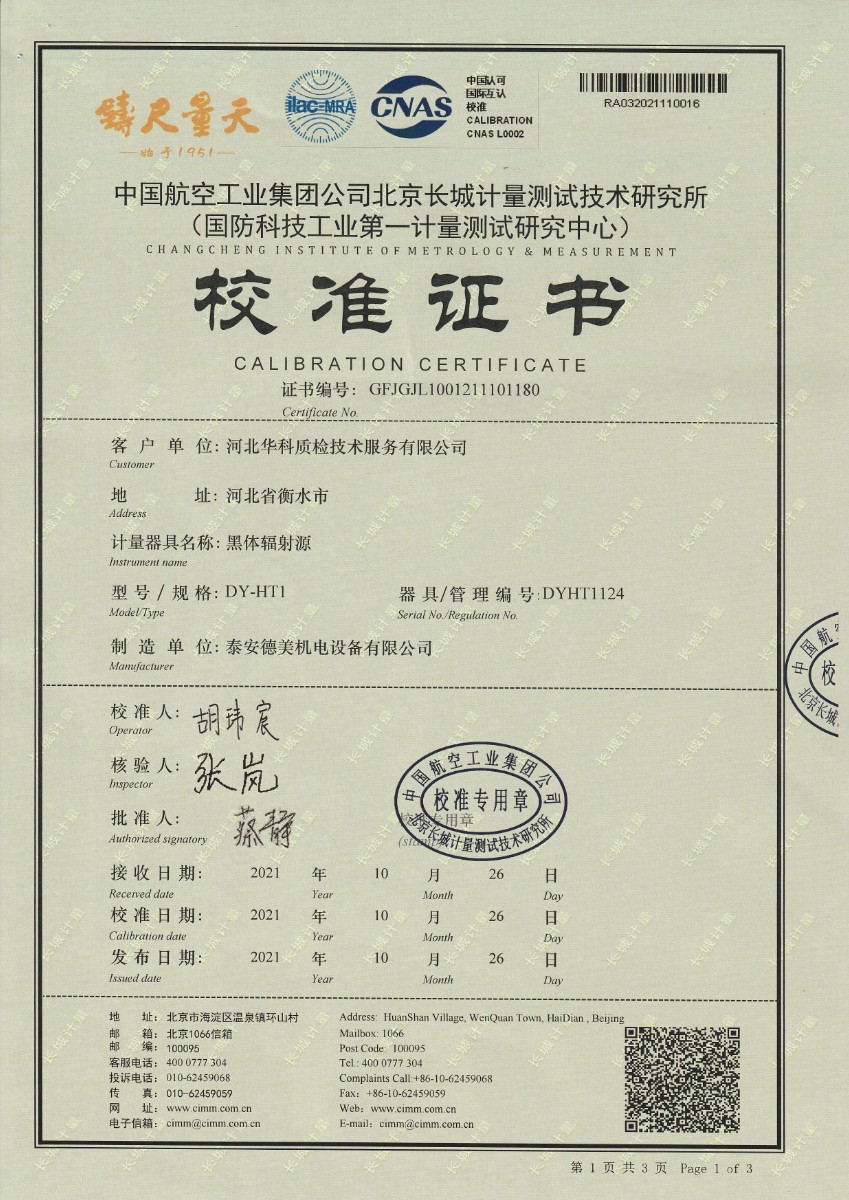 | 上一條:東營市安全工器具質(zhì)量檢測有限公司-黑體輻射源(50-500℃) | 下一條:便攜式溫濕度檢定箱(-10-60℃)校準(zhǔn)證書 |