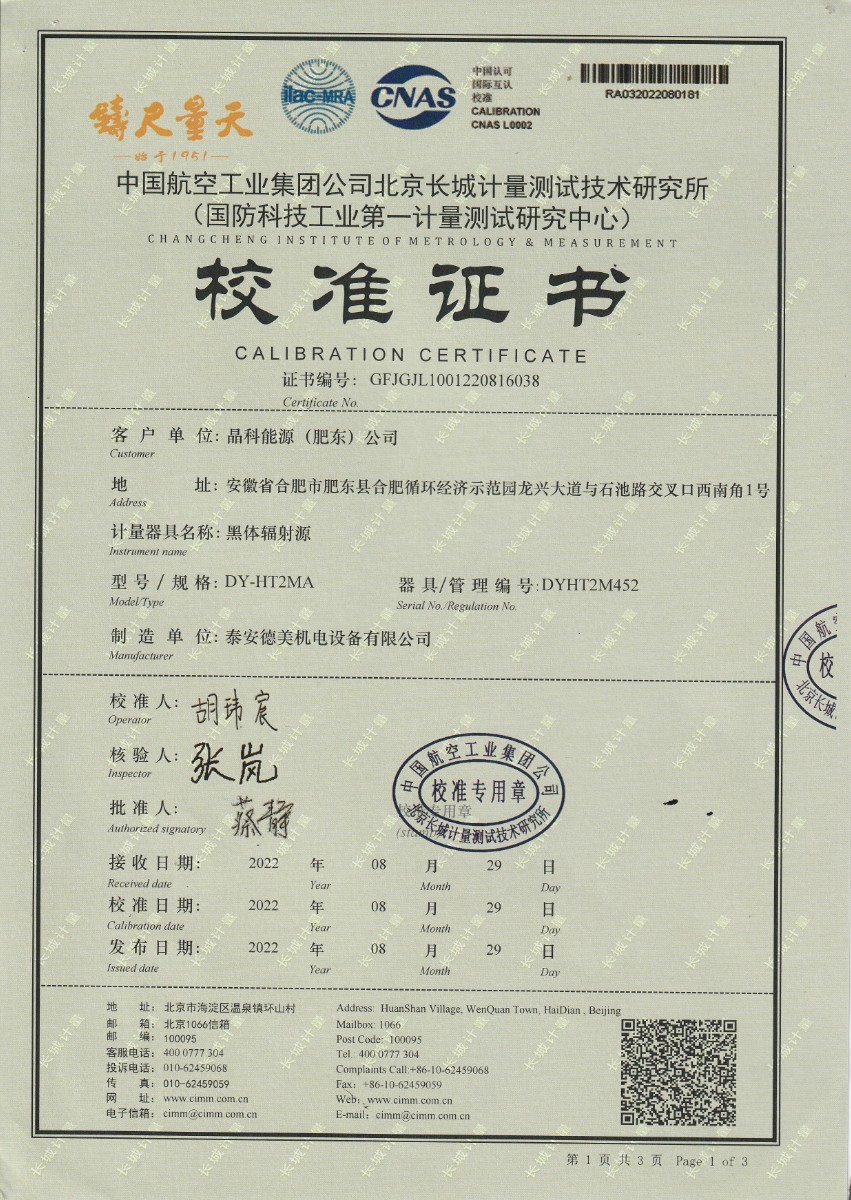 晶科能源(肥東)公司-黑體輻射源 2022-9-5 本文被閱讀 12262 次