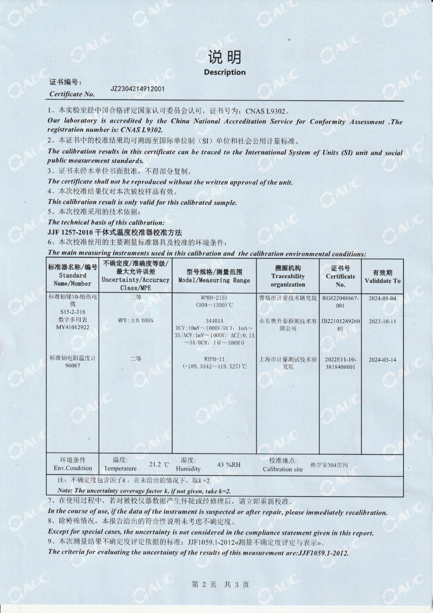上一條:廣東省順邦計(jì)量檢測科技有限公司 冷鏡式露點(diǎn)儀(溫度) 校準(zhǔn)證書 | 下一條:超低溫面源黑體爐(-40-80℃)校準(zhǔn)證書 |