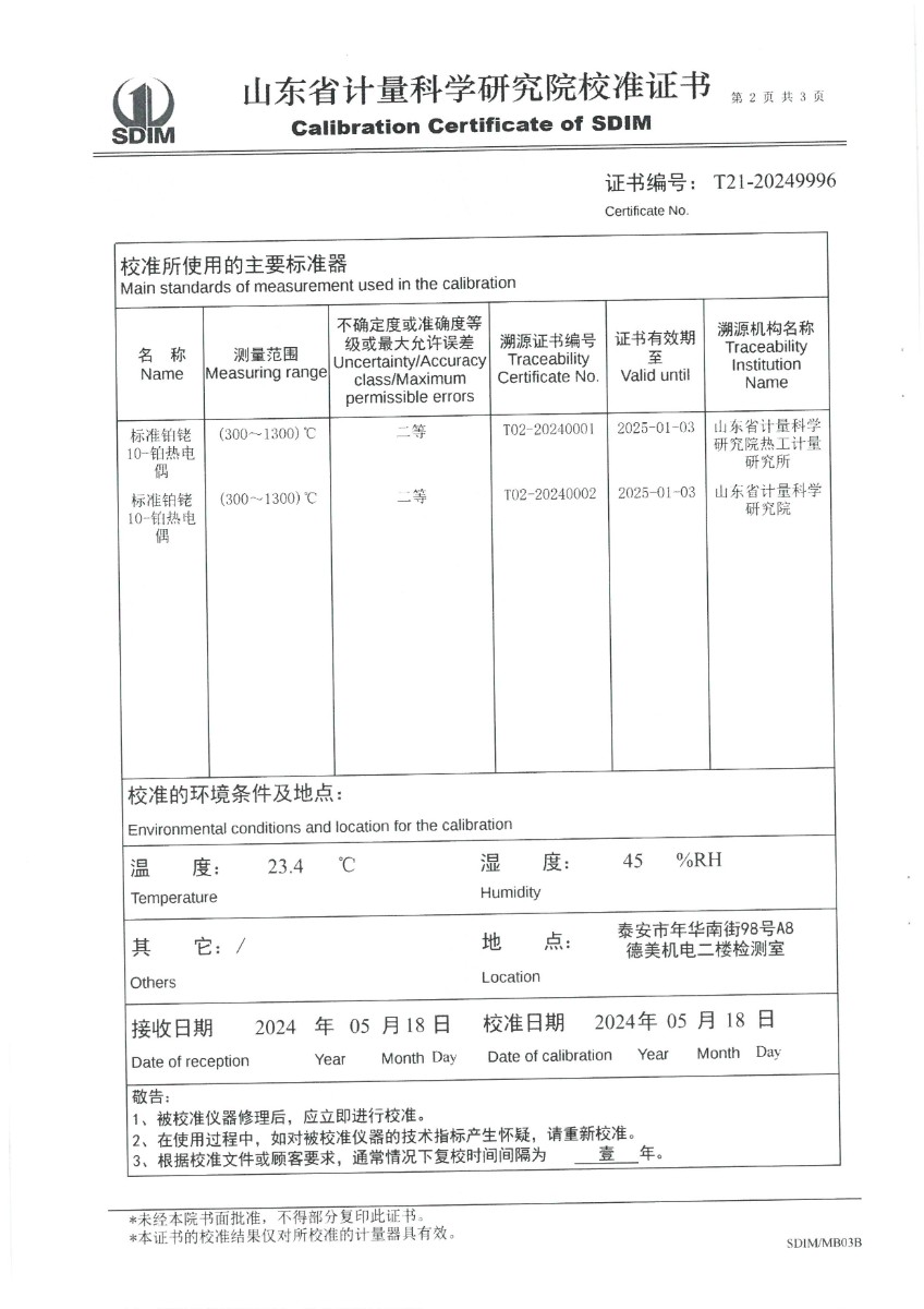 熱電偶檢定爐校準證書 2024-5-25 本文被閱讀 6015 次